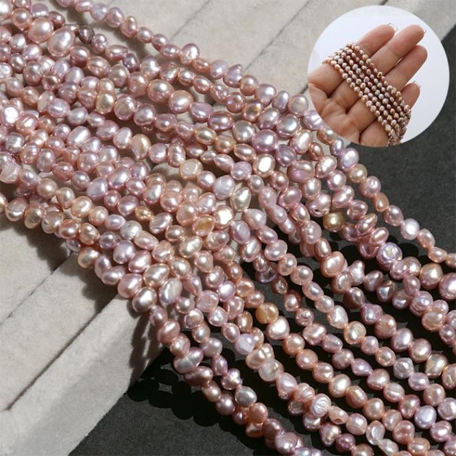 【241. ポテト 淡水パール ビーズ 連】ベビーパール 約3-4mm ミックス(ラベンダー ピンク) 淡水真珠