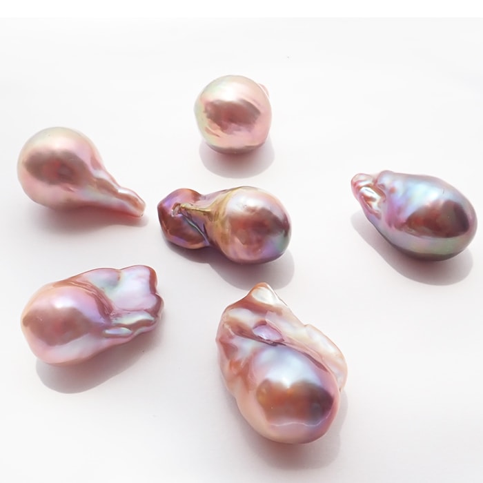 【有核 淡水真珠】大粒 穴なし 縦約20-29mm バロックパール 1粒 ピンクー系~虹色光沢 ハンドメイド用