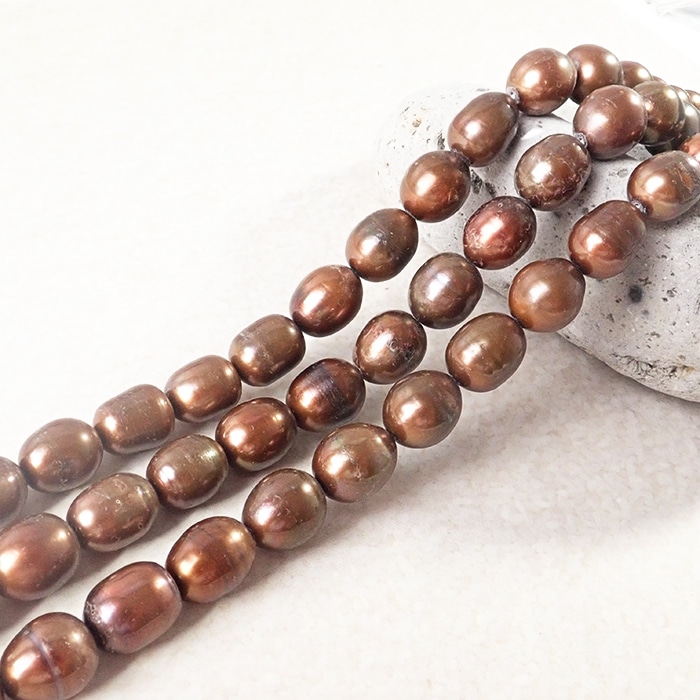 【有核 淡水真珠 約5×9mm】艶やかブロンズカラー 天然パールビーズ 約40cm連 ハンドメイド用