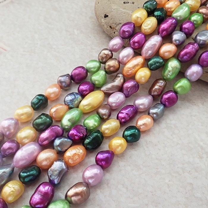 【有核 淡水真珠 約7×6mm】カラフル染色 バロック型 天然パールビーズ 約35cm連 ハンドメイド素材