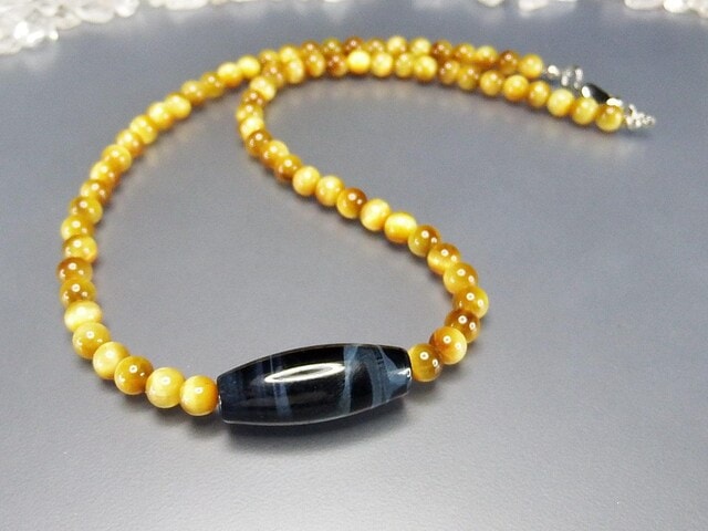 上質縞模様シラー効果ブルータイガーアイ天珠形ミルキータイガーアイ天然石ネックレス