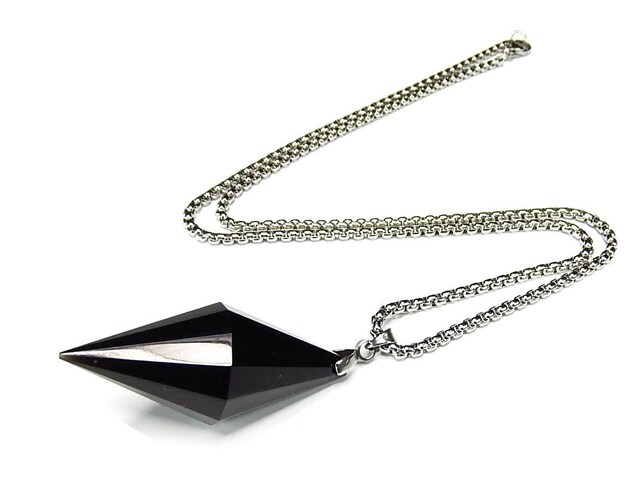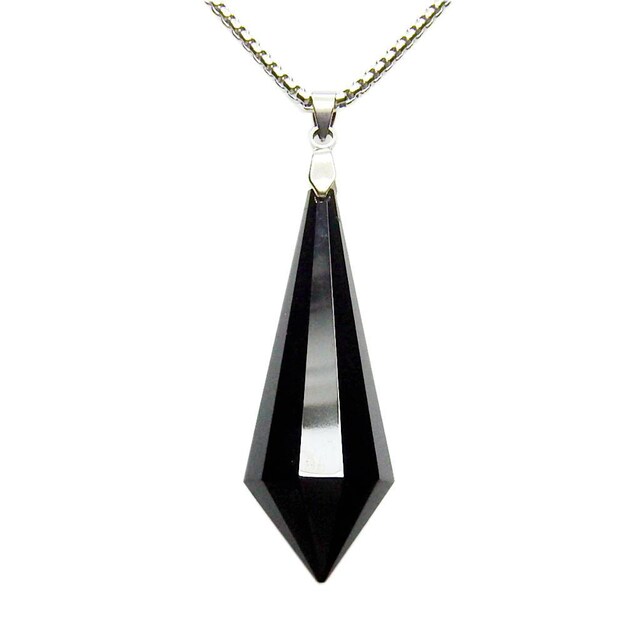 ブラックオブシディアンカットペンダントステンレスネックレス天然石魔除け