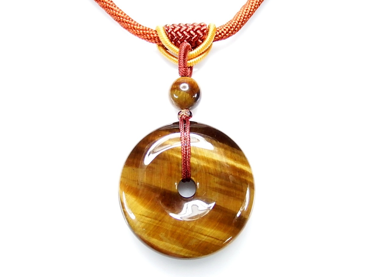 AAA+タイガーアイ丸天然石平安扣高級紐ネックレス金運仕事運御守り石街
