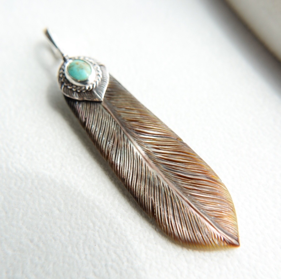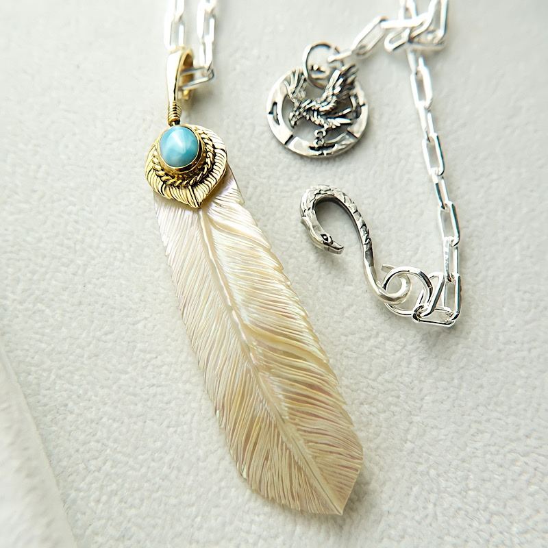 一点物 夜光貝のフェザーネックレス 高品質ラリマールースbrassTOP +