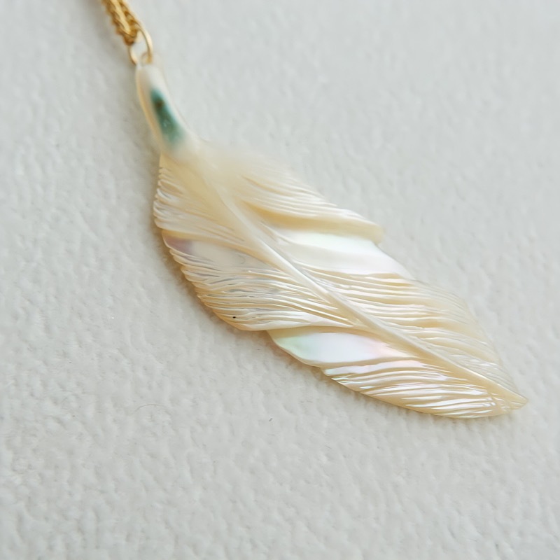 一点作品 ぷっくり夜光貝グリーンフェザーネックレス