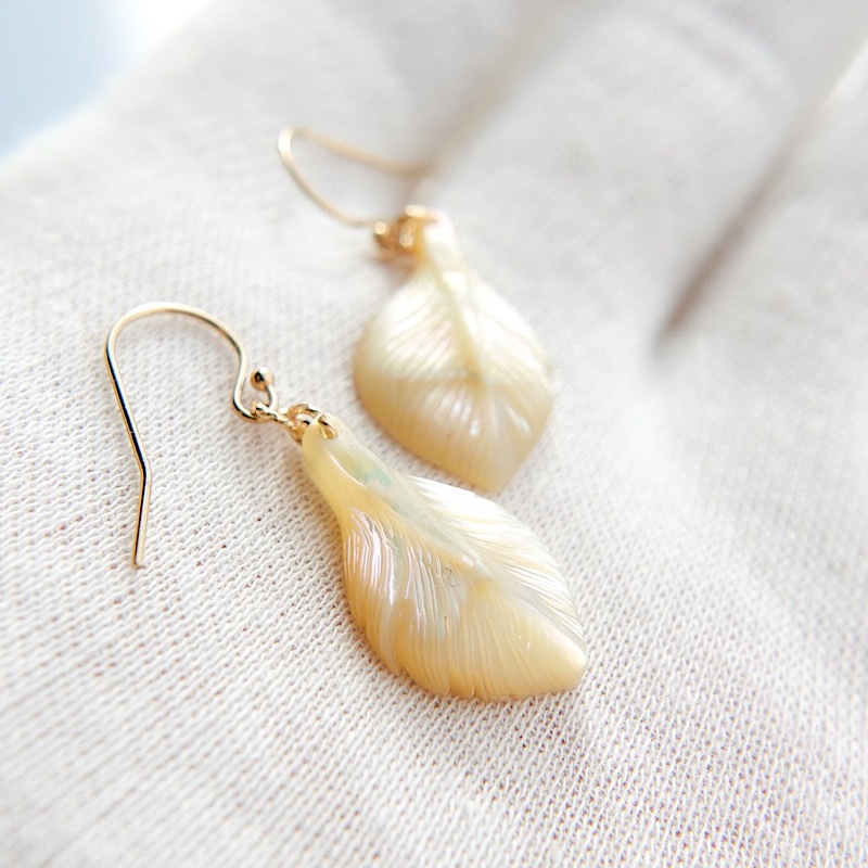 受注製作 夜光貝のハートフェザーピアス 【swaying】