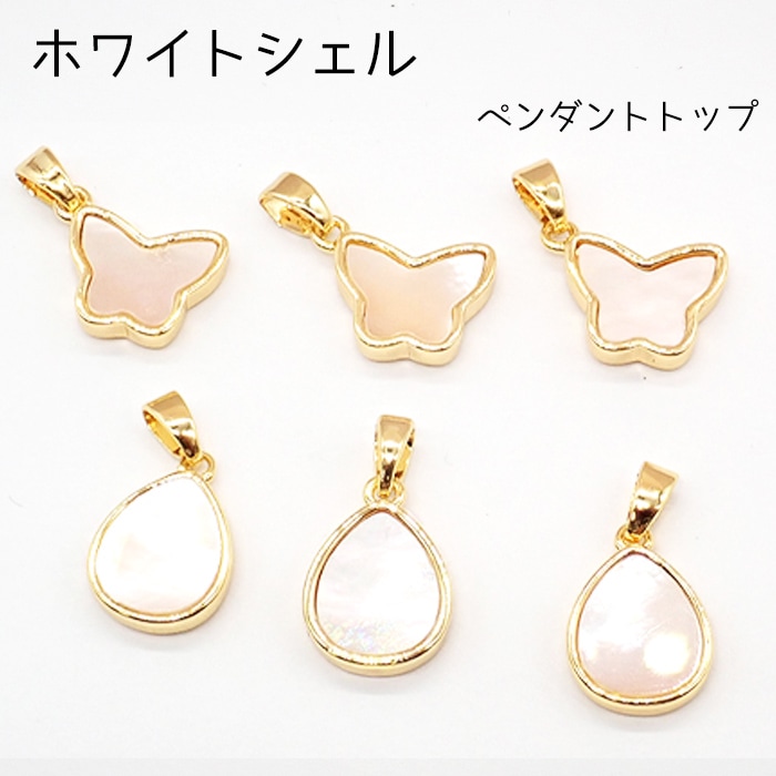 【98】ホワイトシェル ペンダントトップ 蝶 ドロップ バタフライ シェル チャーム 天然素材 国内発送