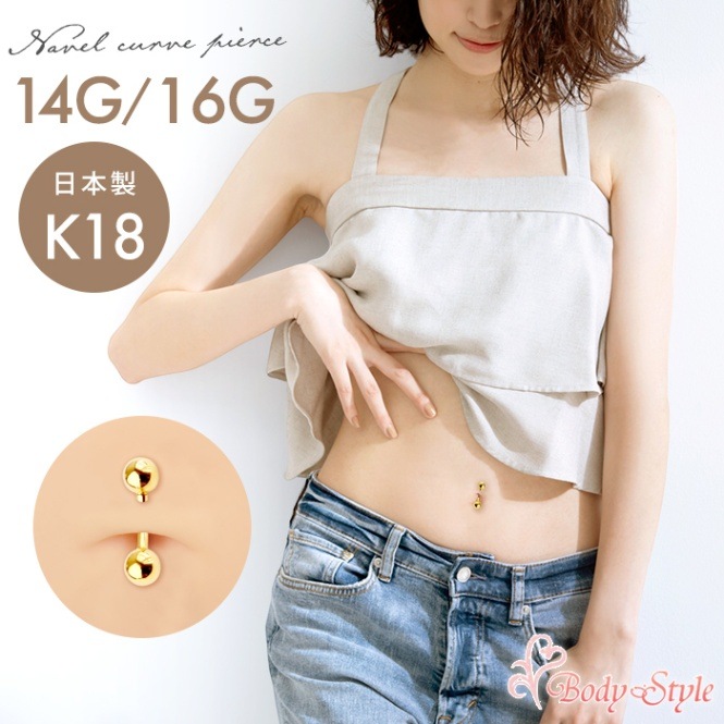 Made in Tokyo へそピアス K18 18金 14g 16g 日本製 ゴールド ボディピアス バナナバーベル カーブバー...