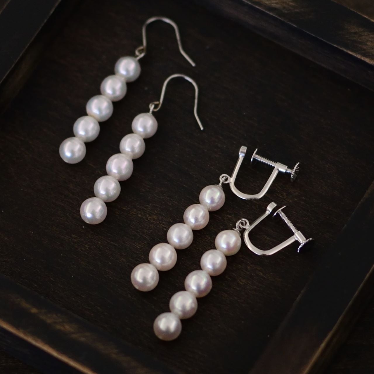 清楚な5ケ付け5㎜珠ピアス・イヤリング【あこや真珠】EP-3143_E3142【若狭パール】