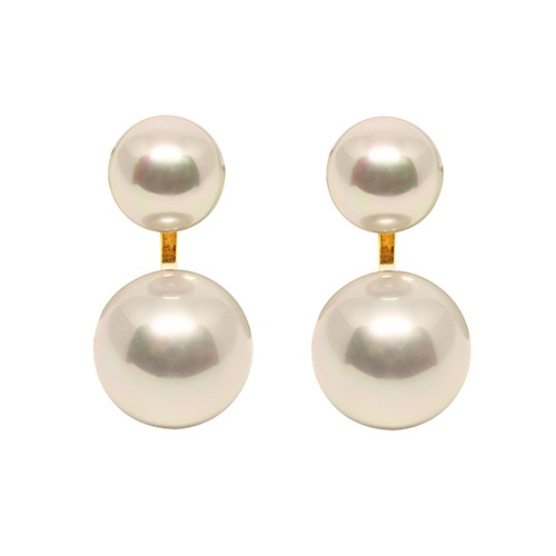 ダブル パール ツーウェイ ピアス (クリーム/ゴールド)