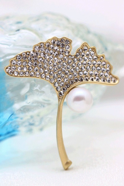 つやたま 最高級大粒11-12mm 本真珠 真珠ブローチ いちょう 銀杏 ホワイト (銀杏葉部分) キュービックジルコニアダイアモ...