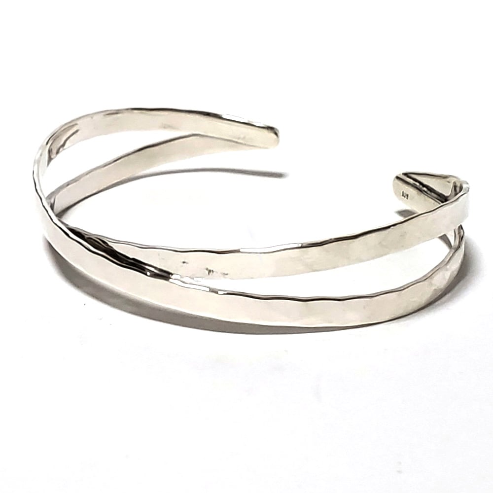 5mm幅 ダイヤカットエンボス 3mm幅スロープカット仕上げ 2連クロスダブル仕様 シルバーバングル 【シルバー925/SILVE...