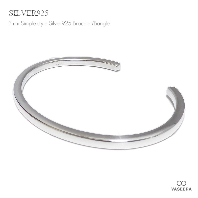 \"細身\"3mm幅 3mm厚 シンプル鏡面仕上げ シルバーバングル 【シルバー925/SILVER925 /ブレスレット】
