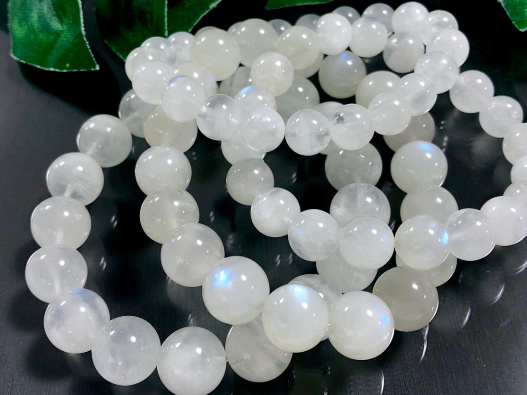 人気のブルーシラー★天然石ブレスレット/ホワイトブルームーンストーン(moon stone/月長石)/ラウンド/約12mm/1本/...