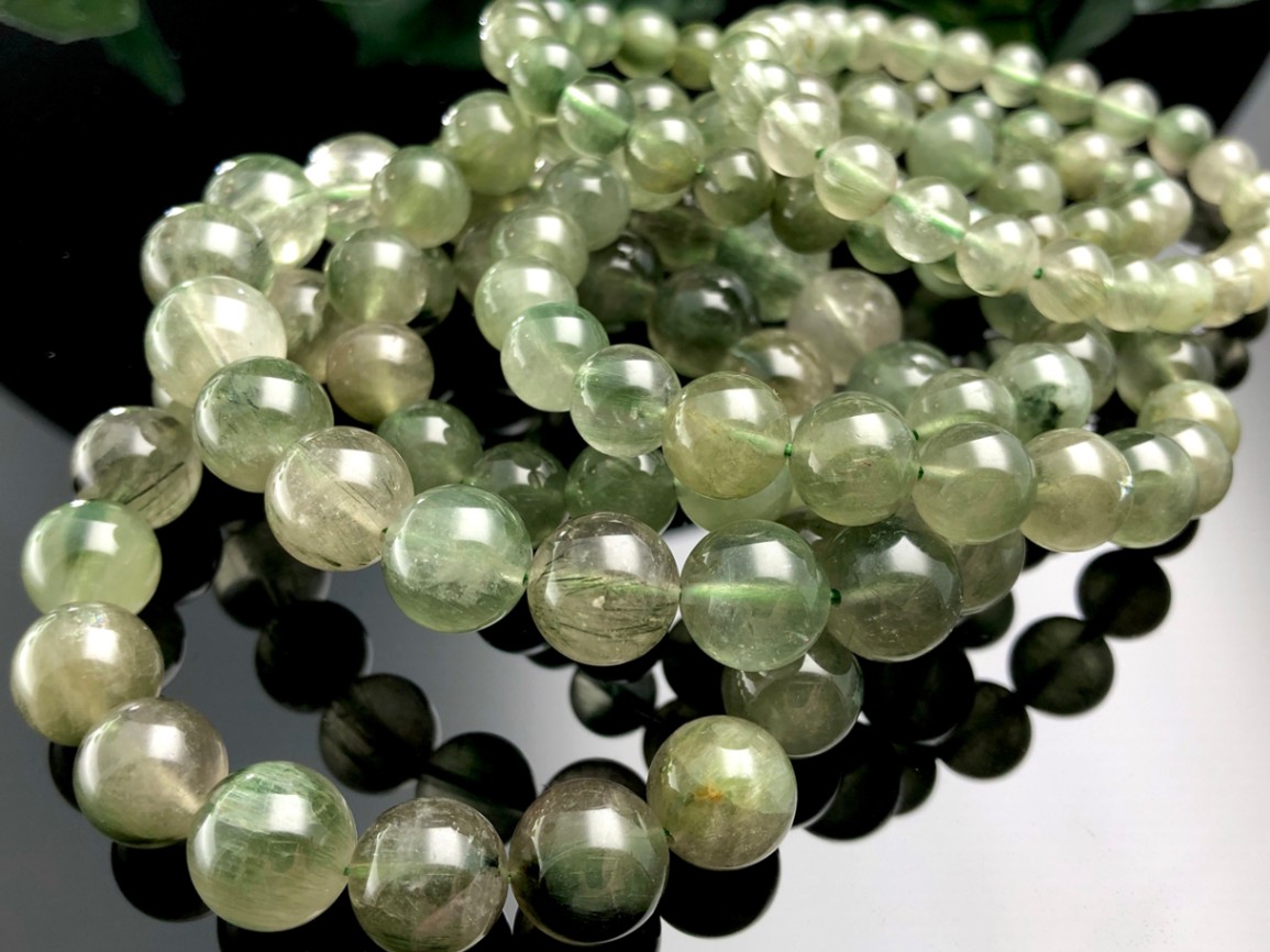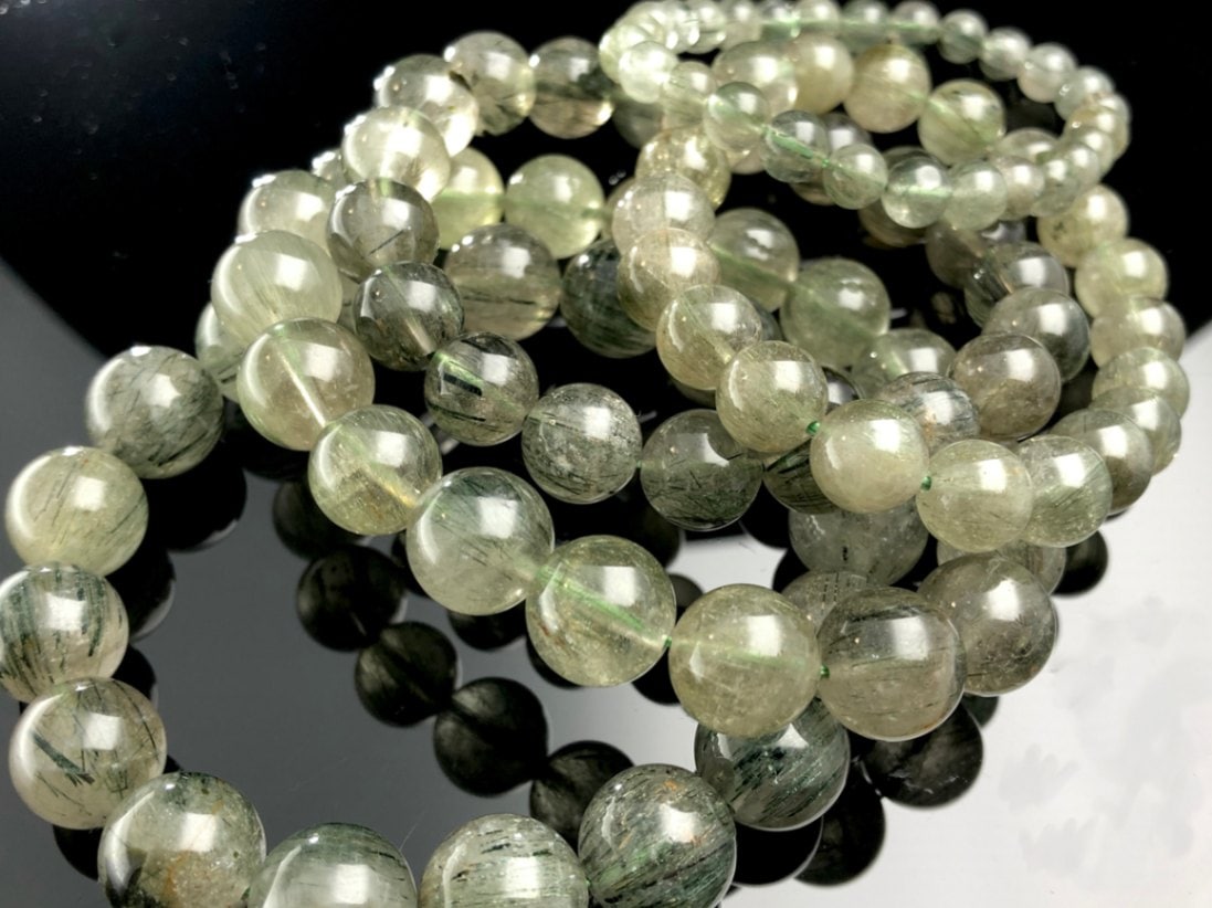 金運・厄除け★天然石ブレスレット/ダークアクチノライトインクォーツ(グリーンルチルクォーツ/Rutilated Quartz/緑針...