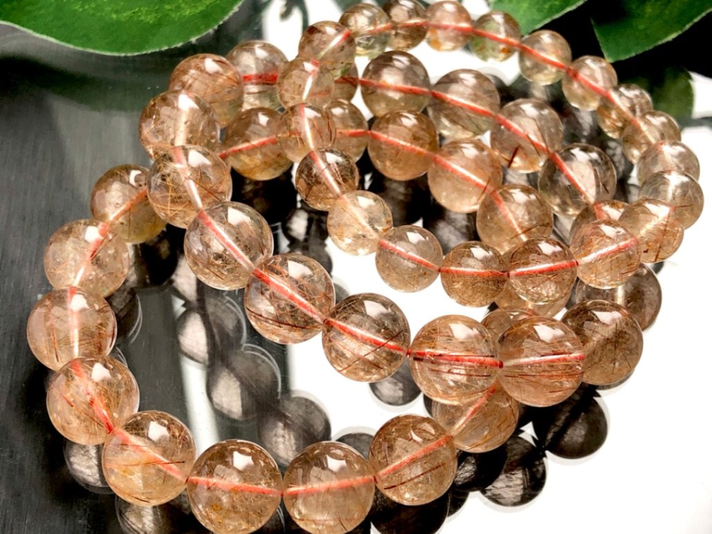 金運・財運の石★天然石ブレスレット/オレンジブロンズルチルクォーツ(ルチレイテッドクォーツ/Rutilelated quartz)...