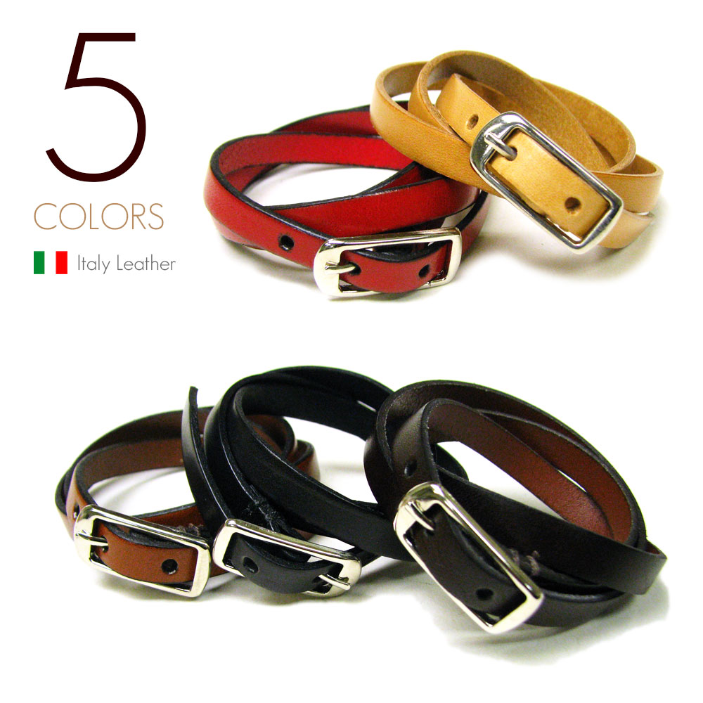 イタリアンレザー(9mm牛革/全5色) シングルピンバックル 三重巻き バックル式 レザーブレスレット /三連ブレスレット 【革...