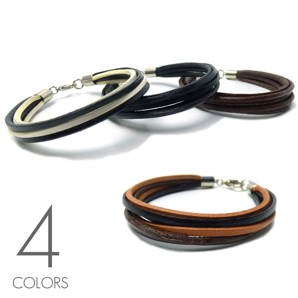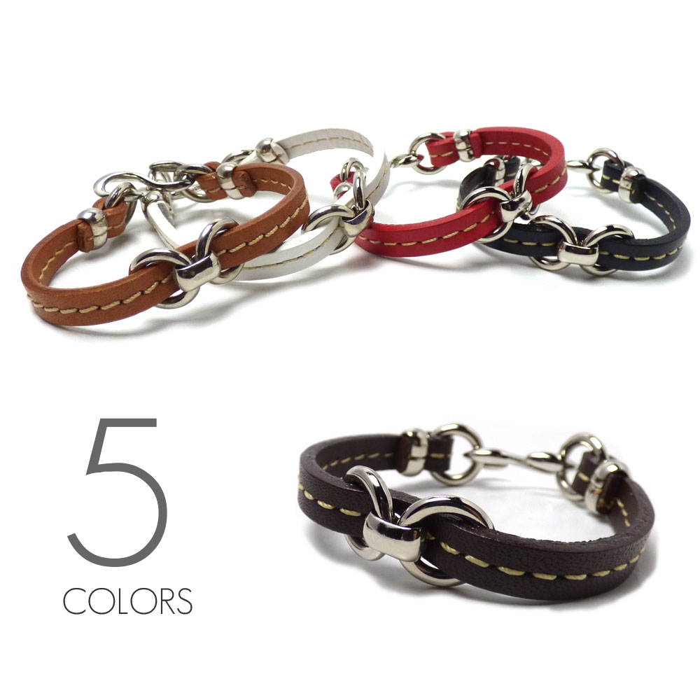 5mm幅 牛革 センターステッチレザーコード スライドダブルリングパーツ S型フック レザーブレスレット 【革 ブレスレット】