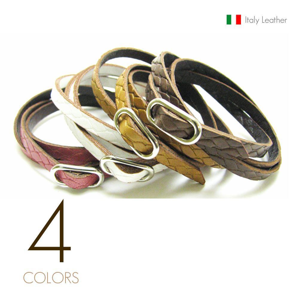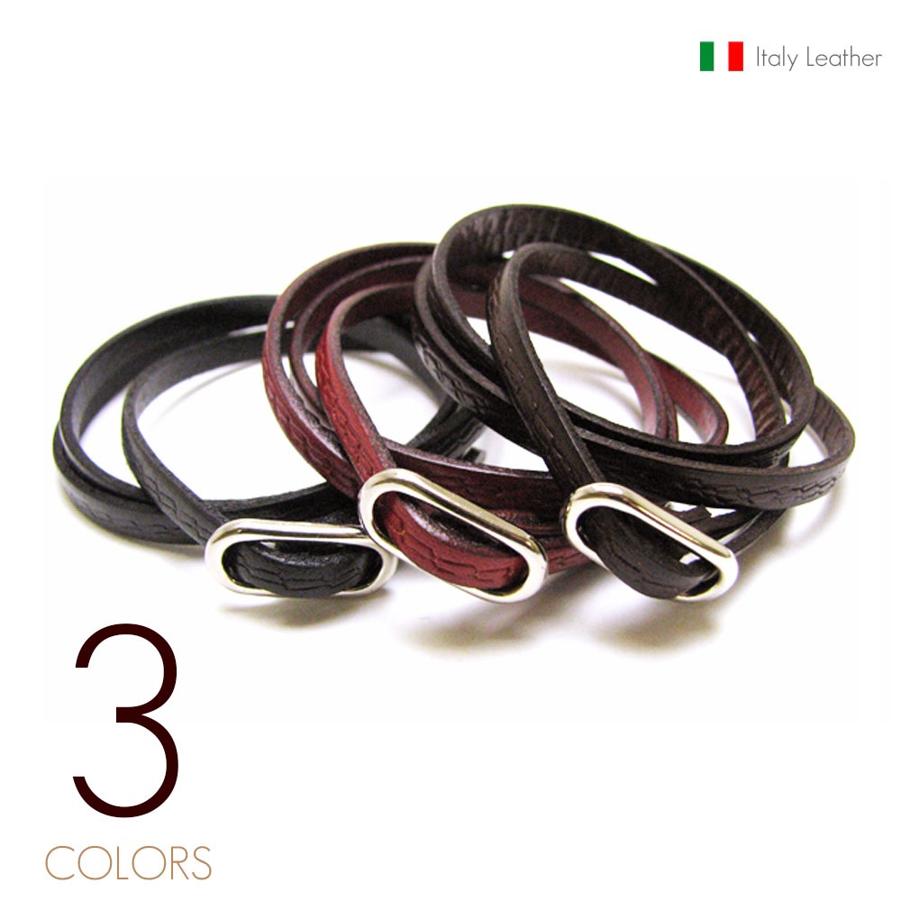 イタリアンレザー(5mm牛革) エンボス仕上げ サイズフリーバックル 三重巻き レザーブレスレット 【革 ブレスレット】