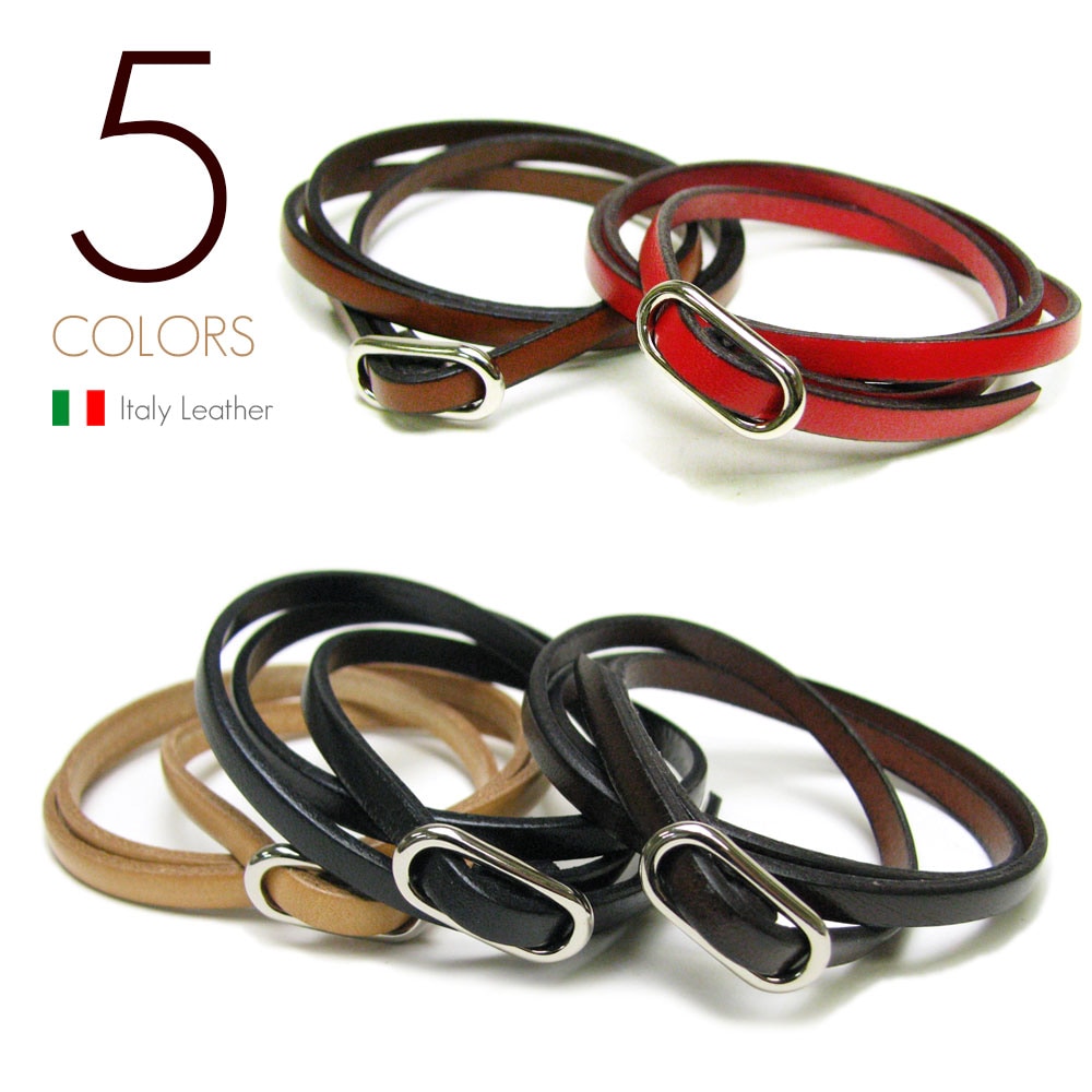イタリアンレザー(5mm牛革/全5色) サイズフリーバックル 三重巻き レザーブレス/三連ブレスレット 【革 ブレスレット /イ...