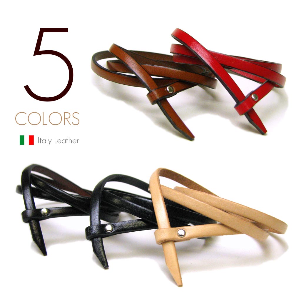 イタリアンレザー(5mm牛革/全5色) 差し込み式サイズフリー 三重巻き ロング レザーブレス/三連ラップブレスレット 【革 ブ...