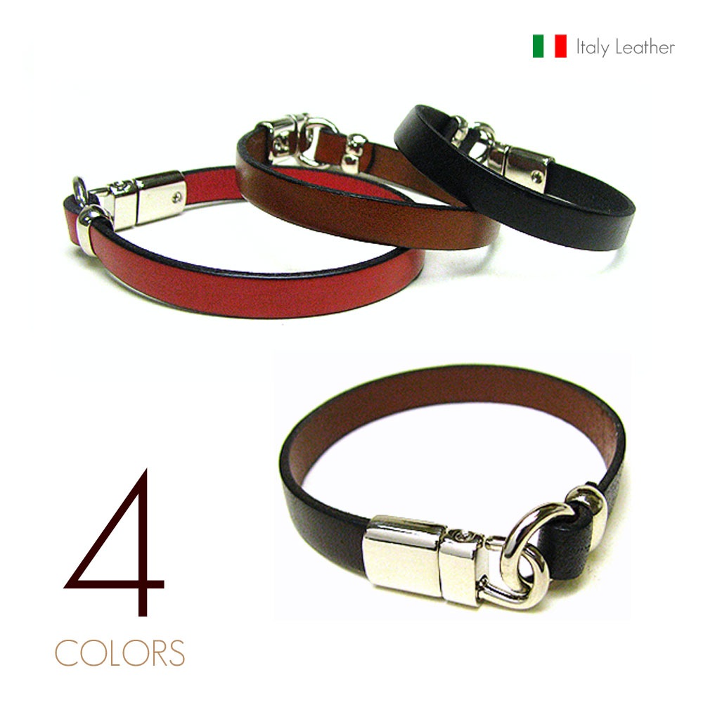9mmイタリアンレザー(牛革) スライド式 鏡面スプリングフック シングル レザーブレスレット 【革 ブレスレット /イタリア...
