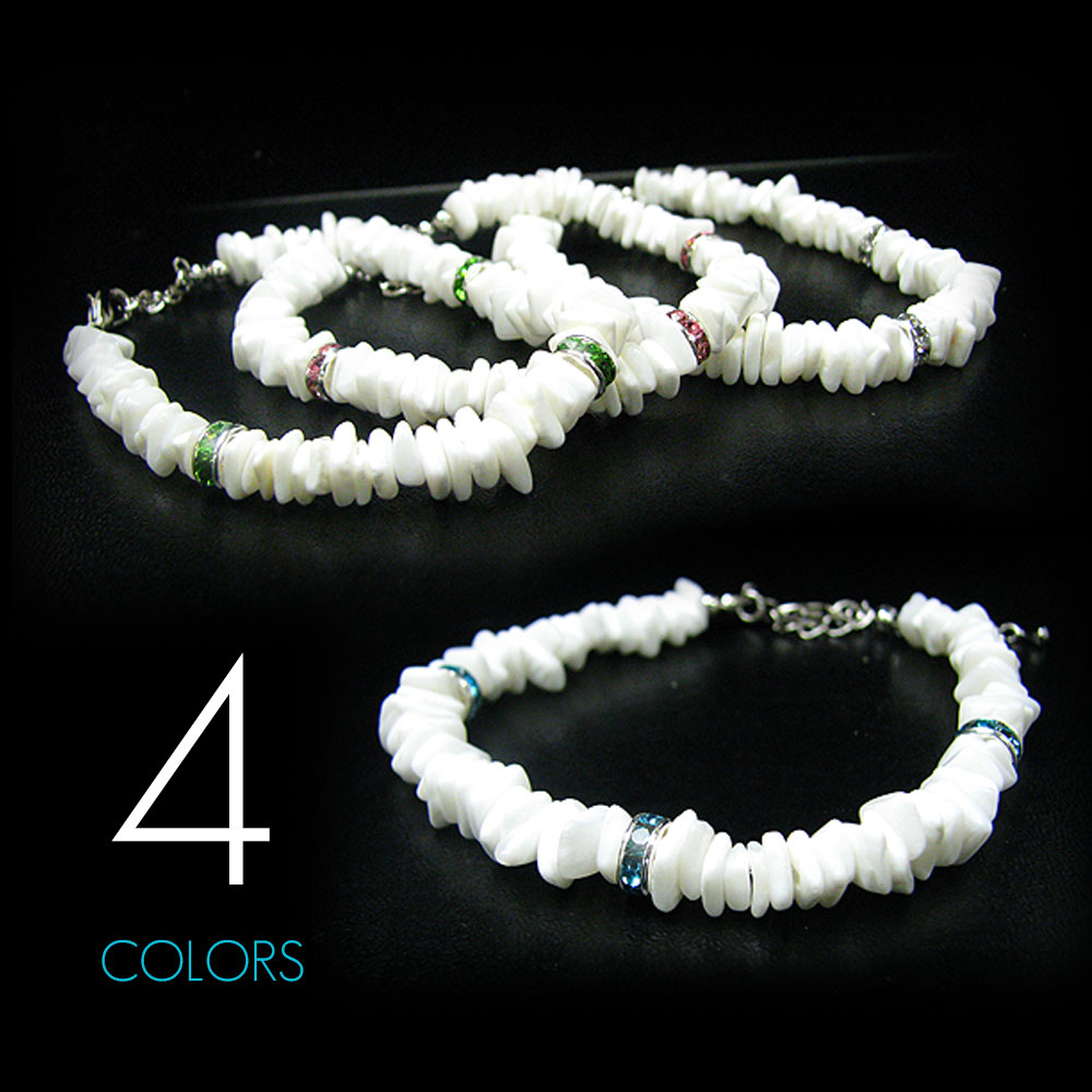 ハワイアンホワイトシェル(プカシェル) スワロフスキーロンデル(全4色) アジャスター付きアンクレット【メンズ/レディース両対応】