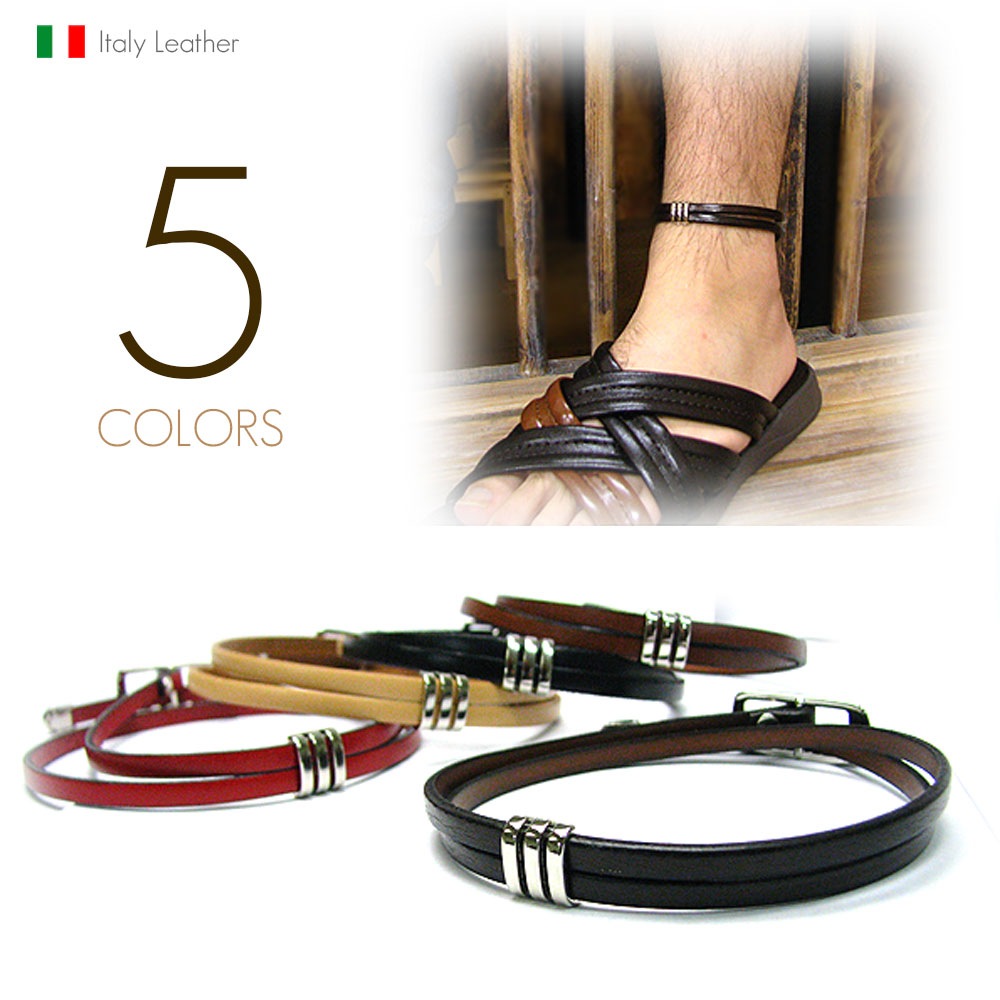イタリアンレザー(牛革) イタリア製スライドパーツ 2連仕様 サイズフリーバックル レザーアンクレット 【メンズ/レディース両対応...