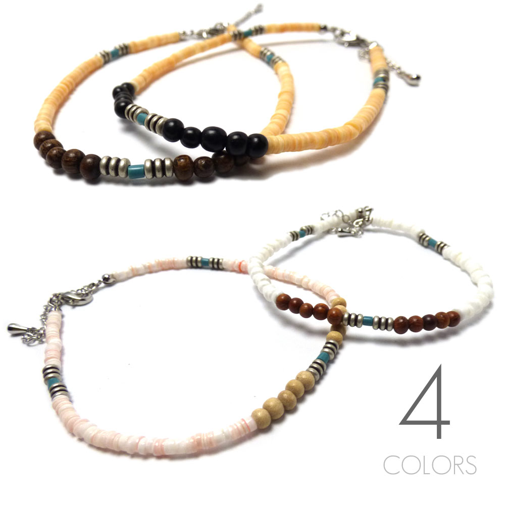 4mm幅 ハワイアンシェル&コアウッド アジャスター付き アンクレット【メンズ/レディース両対応】
