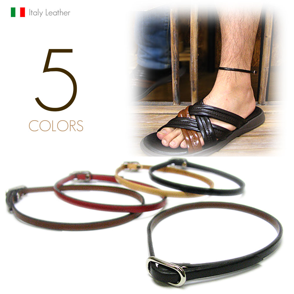 イタリアンレザー(牛革) サイズフリーバックル シングル レザーアンクレット 【メンズ/レディース両対応】