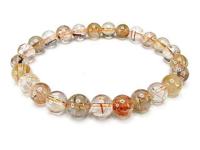 銅針入りルチルクォーツ ブレスレット約7mm強天然石金運健康運