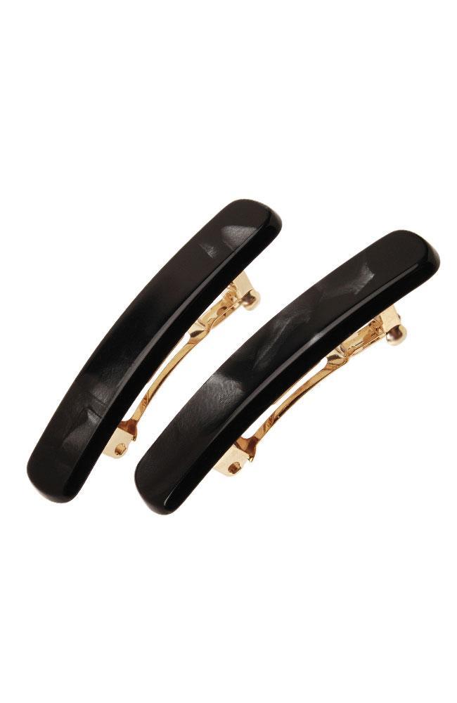 ミニ レクタングル バレッタ 2個セット (ナクロブラック)