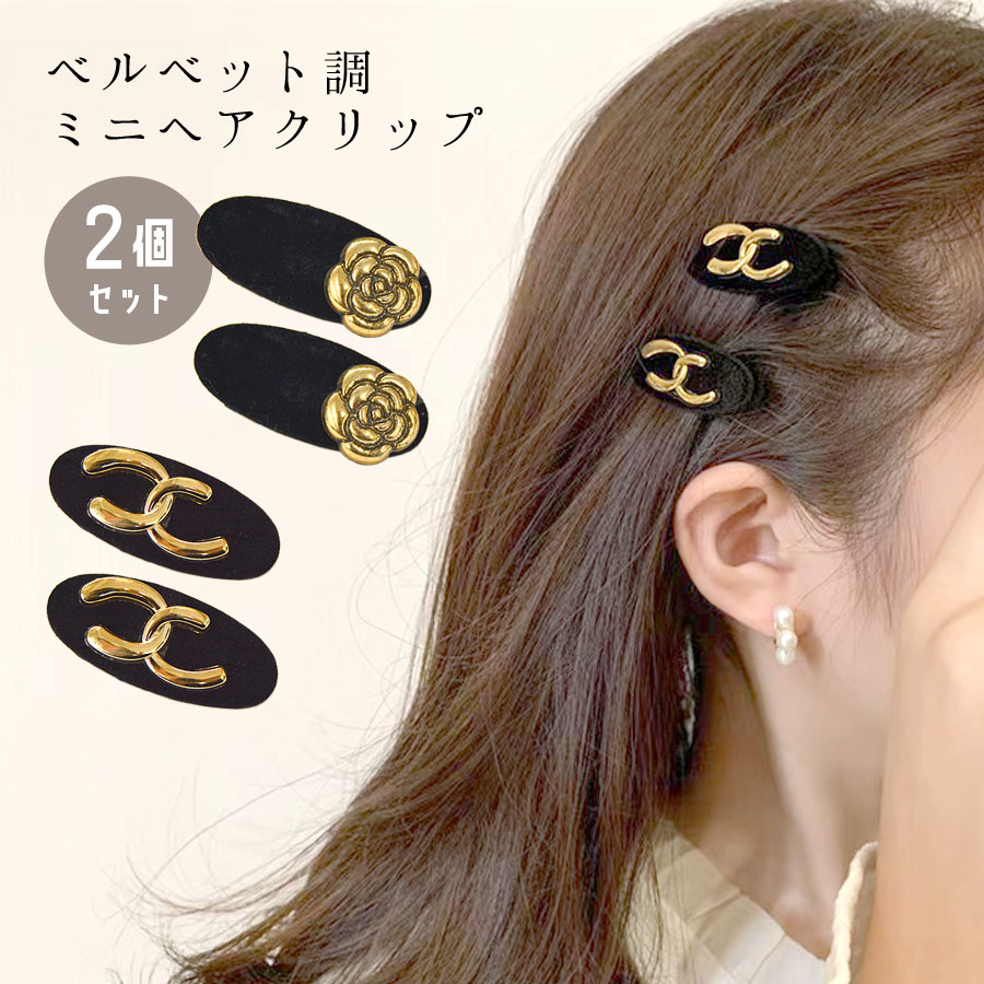 ヘアクリップ 2個セット ミニサイズ ベロア ベルベット ゴールド モチーフ ローズ 薔薇 パーツ 【送料pt100】