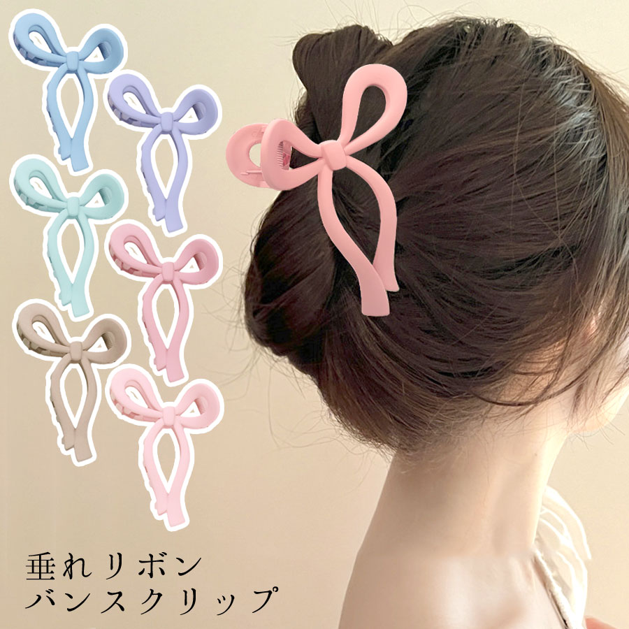 リボン バンスクリップ 垂れリボン 立体的 BIG リボン型 マットカラー パステルカラー ヘアクリップ 【送料pt100】