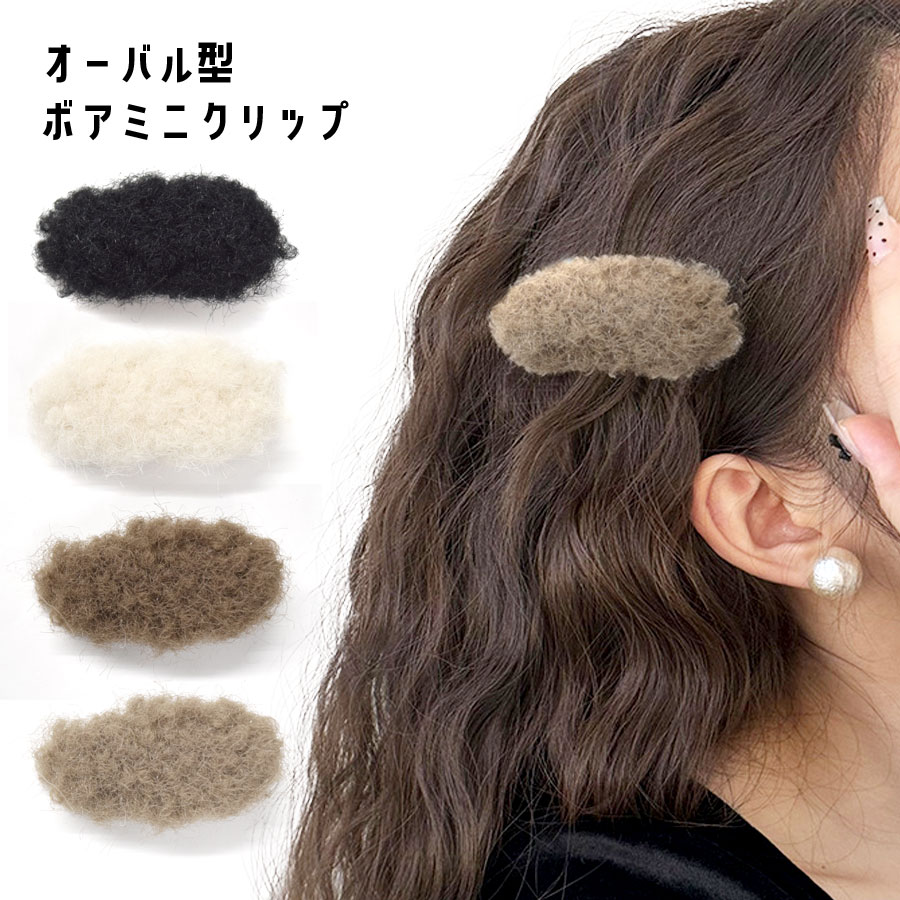 ヘアクリップ ボア ファー 横 ヘアピン もこもこ オーバル ミニ 前髪 小さめ おしゃれ ふわふわ 【送料pt100】