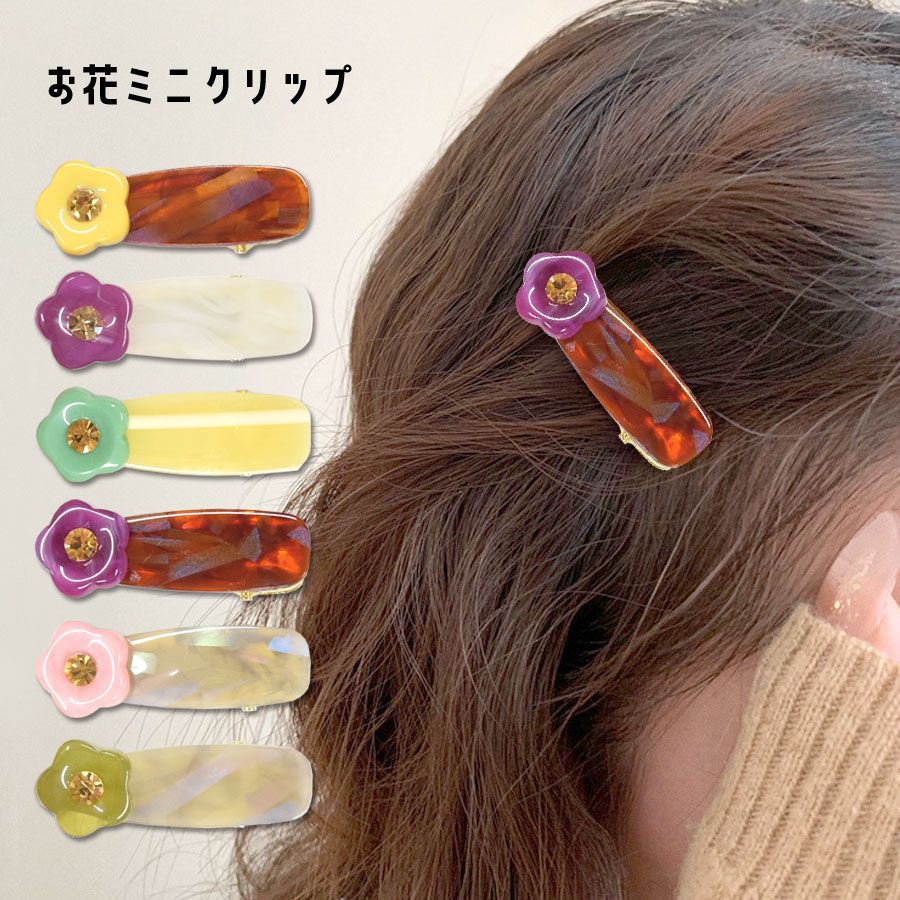 ヘアクリップ ミニ 花 キラキラ 前髪 小さめ フラワー おしゃれ バイカラー レディース ヘアアクセ 【送料pt100】