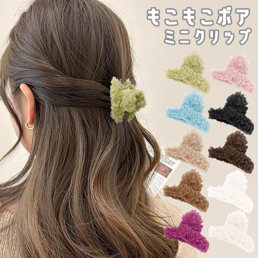 ボア ミニクリップ ヘアクリップ もこもこ プードルボア ハーフアップ レディース ヘアアクセサリー 【送料pt100】