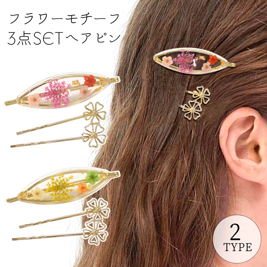 ヘアピン ヘアクリップ 3点セット 3本セット ミニ ヘアアクセサリー 花柄 フラワー 押し花 アメピン 【送料pt100】