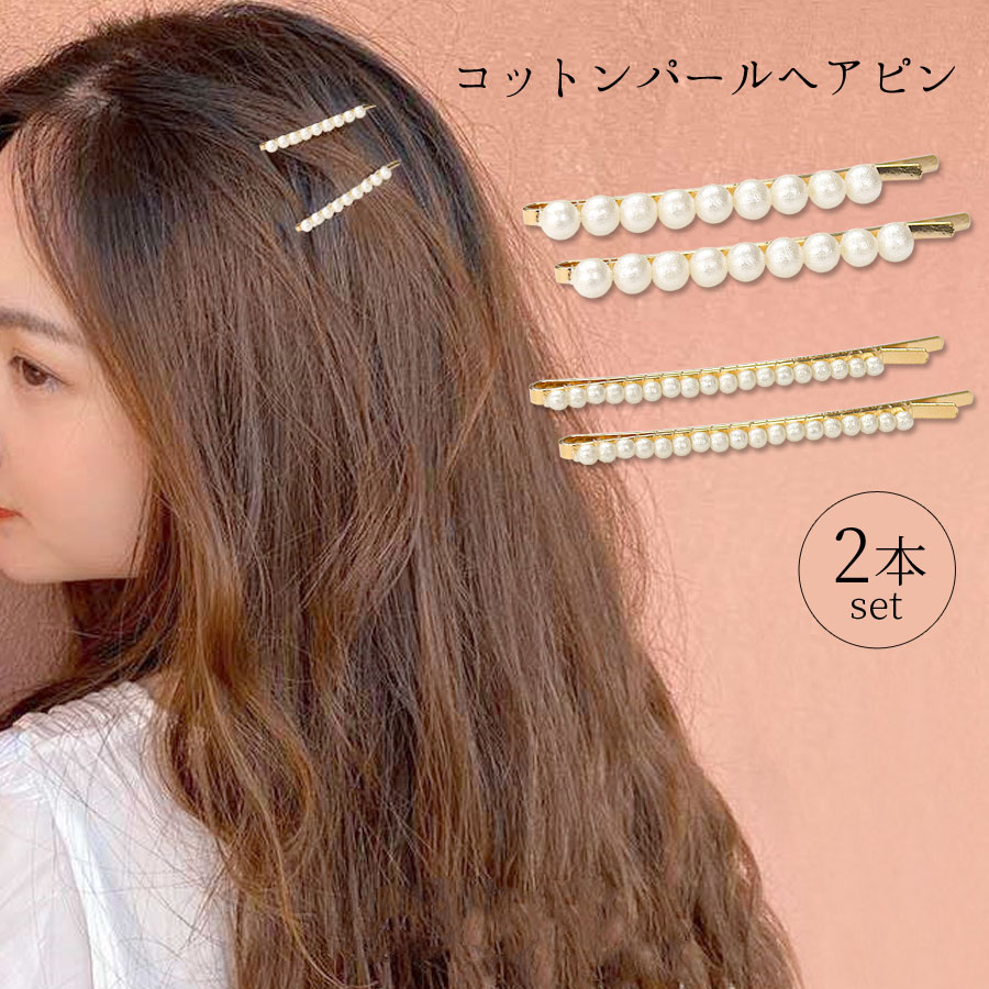 コットンパール ヘアピン 2本セット アメピン パール ゴールド レディース ヘアアクセサリー 【送料pt100】