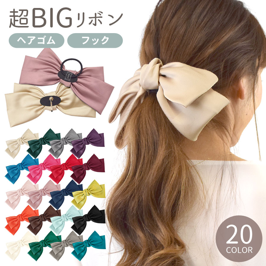 ヘアゴム フック BIG リボン ビッグリボン サテン BIGサイズ 大きい ヘアアクセサリー 【送料pt100】