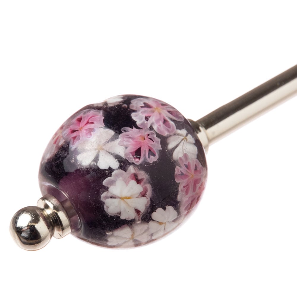 とんぼ玉かんざし 桜柄・紫 飽きのこないシンプルデザインの蜻蛉玉簪 Japanese hairpin Hair stick
