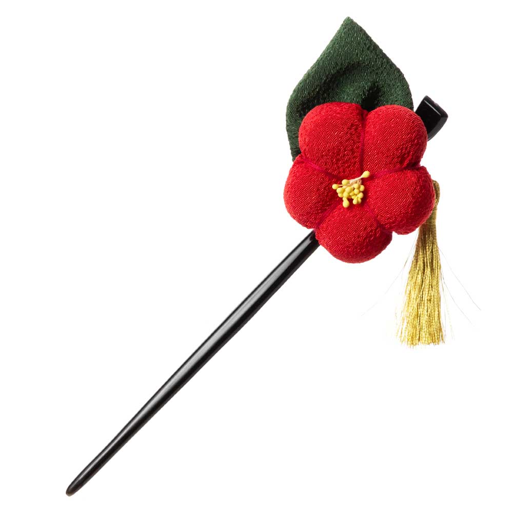 和小物マルシェ ちりめん椿かんざし (CO-2568) 軸長さ15cm 樹脂製軸 和装だけでなく洋装にも使える簪 ヘアアクセサリー...