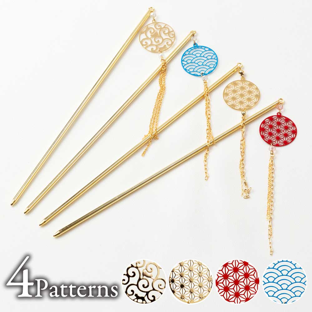 和小物マルシェ 和紋かんざし 軸長さ14.8cm 金属製軸 和装だけでなく洋装にも使える簪 ヘアアクセサリー 浴衣 夏祭り 花火 ...