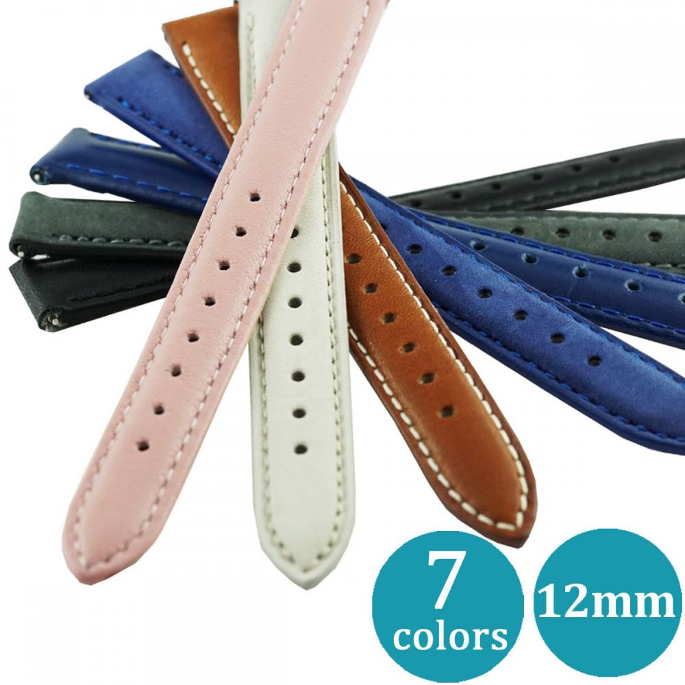 12mm 腕時計ベルト 革ベルト 牛革 トリコロール