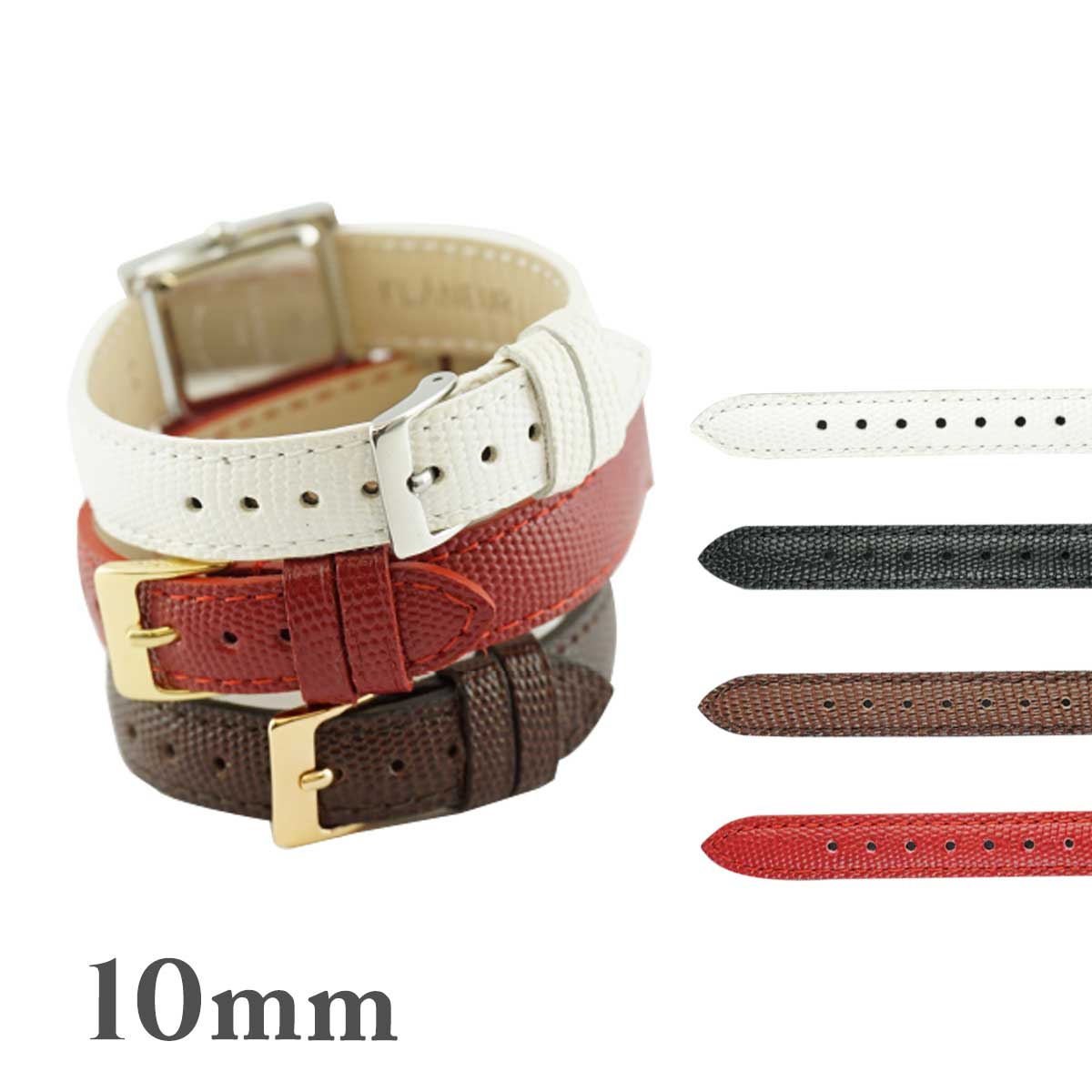 10mm 腕時計ベルト 牛革マイクロリザード型押し フランス製