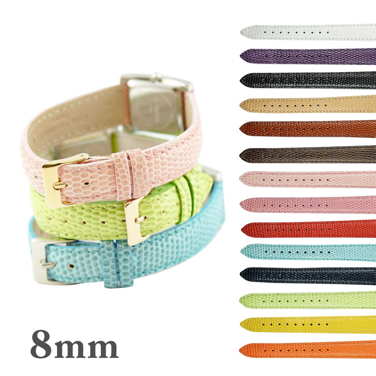 8mm 腕時計ベルト ロワール 牛革リザード型押し フランス製