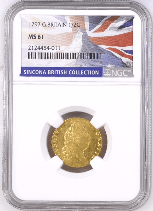【動画あり】グレートブリテン 1797年 ジョージ3世 1/2ギニー金貨 NGC-MS61
