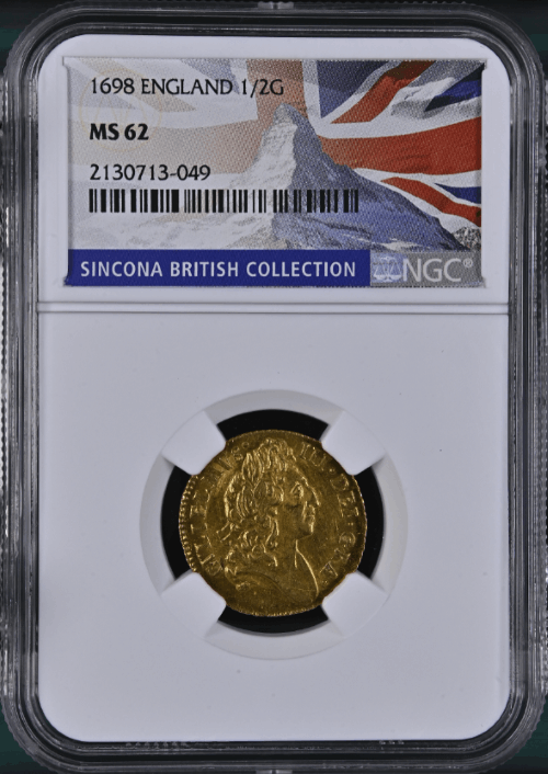 【動画あり】グレートブリテン 1698年 ウイリアム3世 1/2ギニー金貨 NGC-MS62