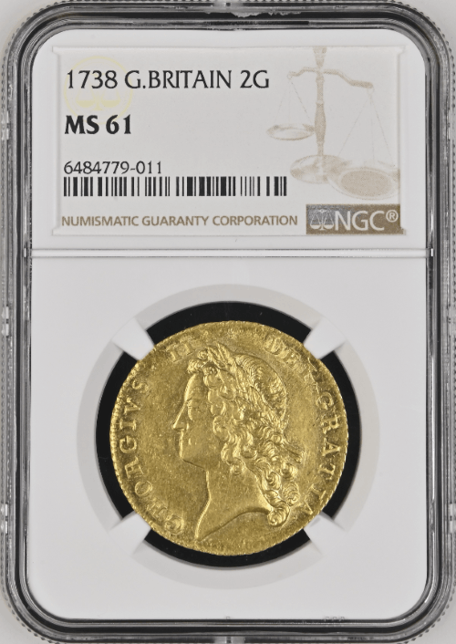 【動画あり】グレートブリテン 1738年 ジョージ2世 2ギニー金貨 NGC-MS61 Augustana Collection