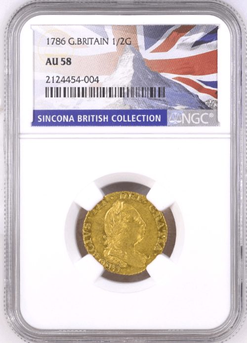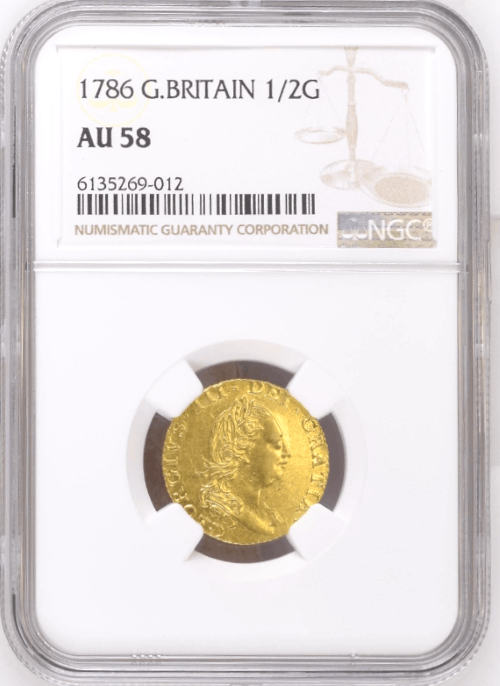 【動画あり】グレートブリテン 1786年 ジョージ3世 1/2ギニー金貨 NGC-AU58